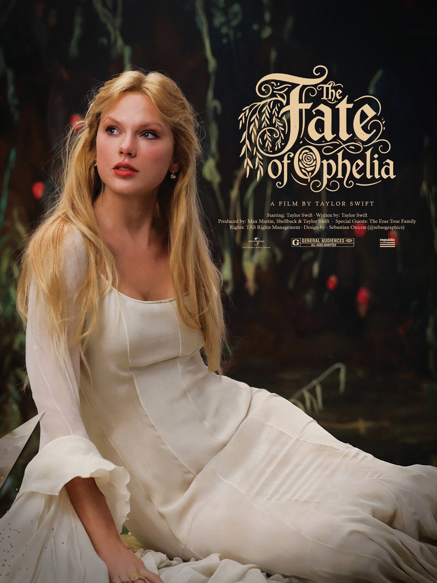 "The Fate of Ophelia"는 테일러 스위프트가 2025년에 발표한 앨범 『The Life of a Showgirl』에 수록된 싱글입니다. 이 앨범은 테일러 스위프트의 음악적 여정에서 또 하나의 중요한 전환점이자, 아티스트로서의 깊어진 통찰을 엿볼 수 있는 작품으로 평가됩니다. 곡의 제목처럼 셰익스피어의 비극적인 인물 '오필리아'를 모티프로 삼아, 사랑, 배신, 그리고 불가피한 운명에 대한 테일러 스위프트식의 재해석을 담아냈습니다.